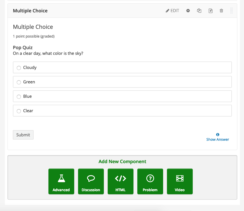 Ce sont plus que des choix multiples. Studio supporte plus d'une douzaine de types de problèmes afin de défier vos apprenants.